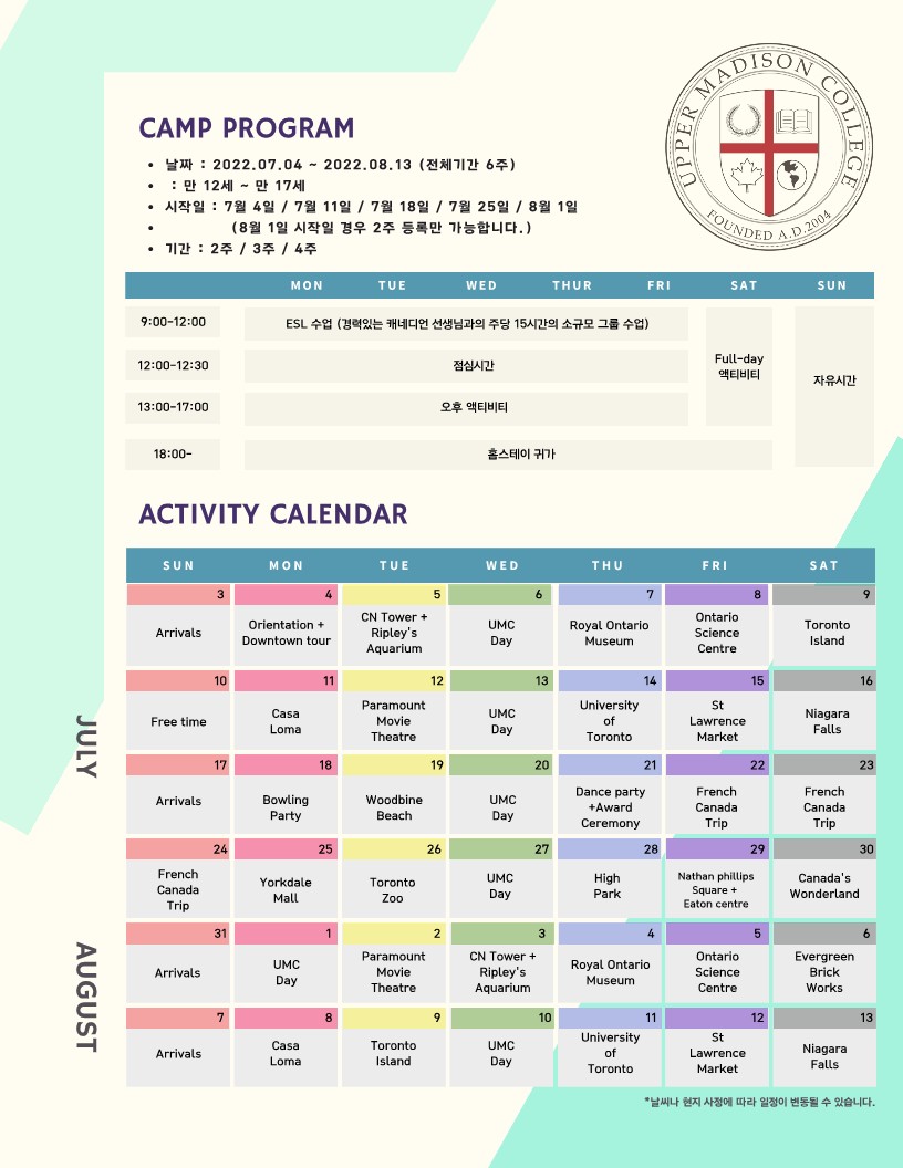 ¸¸¾à ´õ ±æ°Ô Âü°¡ÇÏ°í ½ÍÀº ÇлýµéÀº 4ÁÖ full camp ÇÁ·Î±×·¥+ 2ÁÖ°£ ¿ÀÀü ESL ¼ö¾÷ À¸·Î